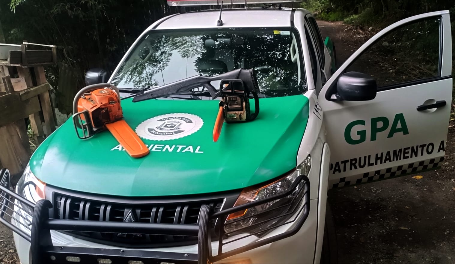 Ao solicitar a Licença de Porte e Uso (LPU), exigida pela legislação ambiental para utilização de motosserra, os agentes constataram que o responsável não possuía a documentação obrigatória. Durante vistoria no veículo utilizado pelos envolvidos, a equipe também localizou uma espingarda de pressão, sem comprovação de regularidade.