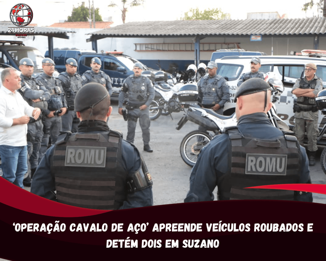 Uma ação integrada das forças de segurança resultou na apreensão de veículos com queixa de roubo ou furto e na detenção de duas pessoas na noite desta quinta-feira (16/04), em Suzano. A operação, denominada “Cavalo de Aço”, foi realizada no distrito de Palmeiras e contou com a atuação conjunta da Guarda Civil Municipal de Suzano, Polícia Militar do Estado de São Paulo, Polícia Civil do Estado de São Paulo e agentes da Secretaria Municipal de Transporte e Mobilidade Urbana.