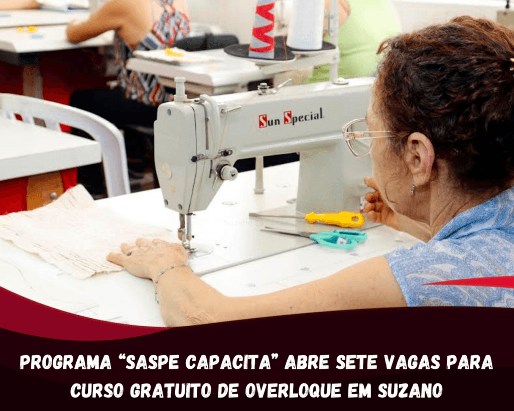 O Serviço de Ação Social e Projetos Especiais (Saspe) abre nesta terça-feira (03/02) sete vagas para o curso gratuito de overloque, voltado à qualificação profissional para atuação na indústria têxtil. A formação integra o programa “Saspe Capacita” e tem foco na geração de renda e inserção no mercado de trabalho.
